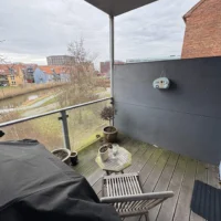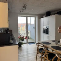 Denne flotte 2-værelses lejlighed på 90 m², byder på masser af plads, lys og en skøn udsigt over åen.