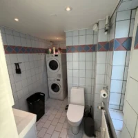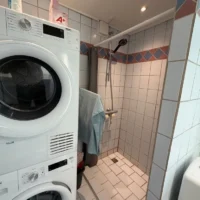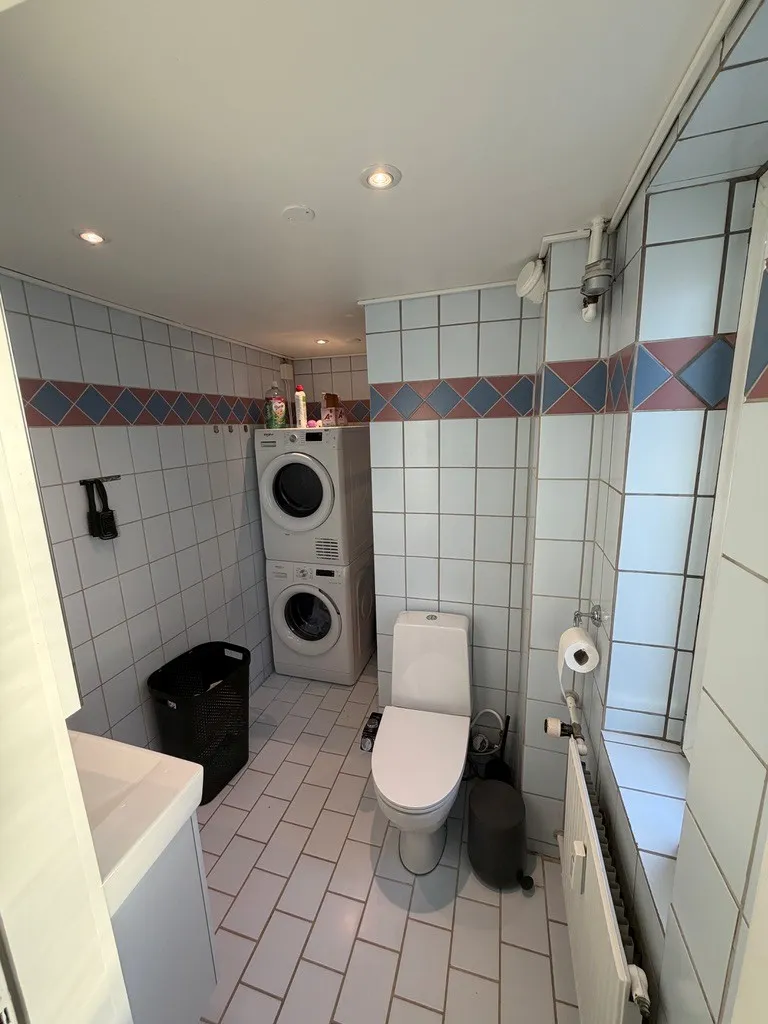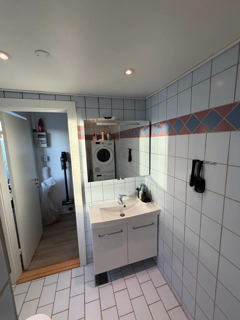 ✔️ Nyere badeværelse med vaskesøjle (vaskemaskine og tørretumbler)